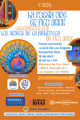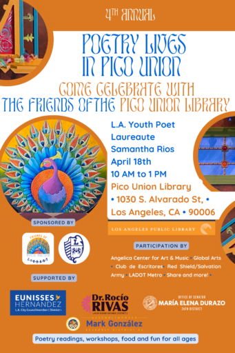 Join the fun and join us at the 4th Annual Poetry Lives in Pico Union on Saturday, April 18 from 10am to 1pm.